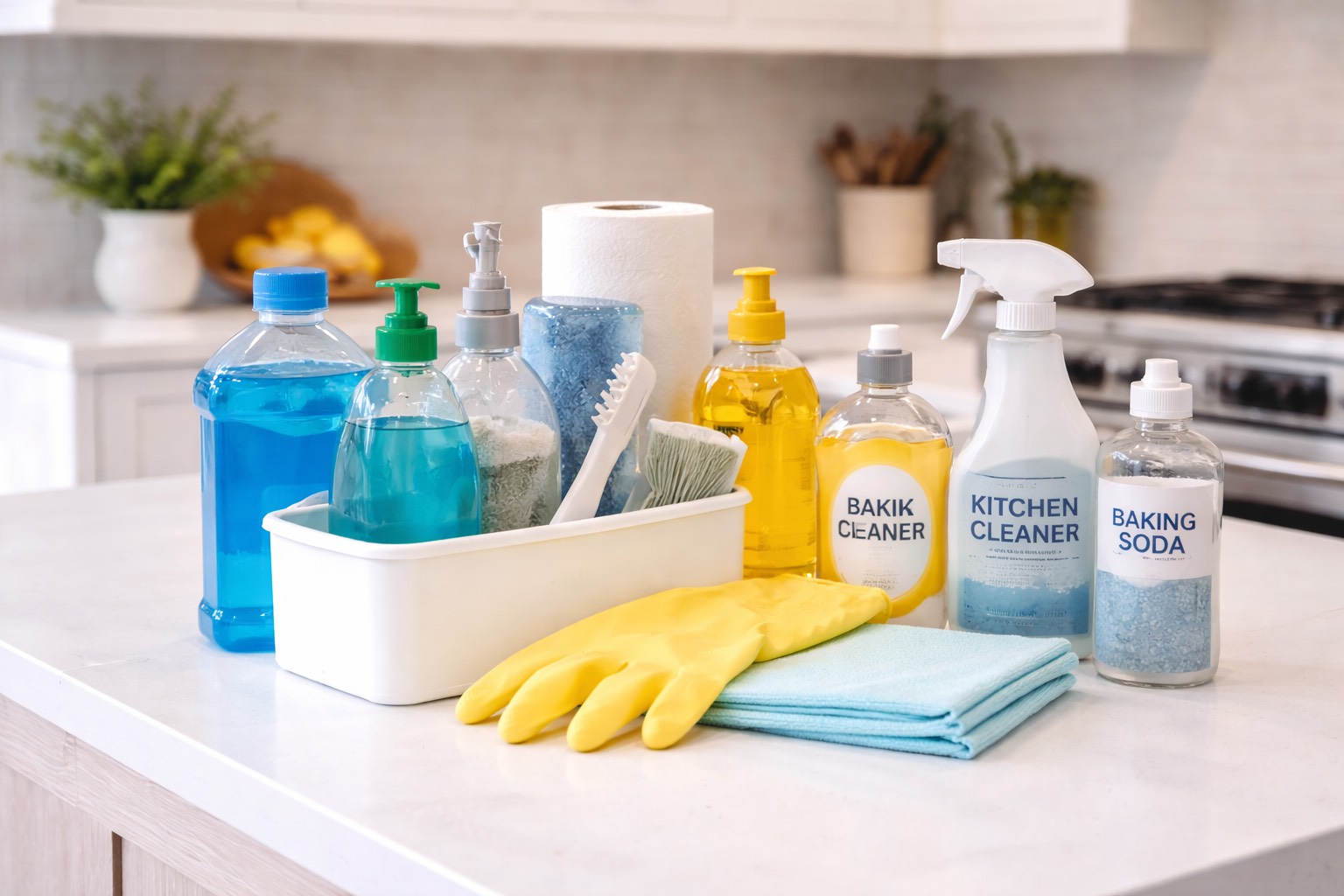 下の段には洗剤のストックや掃除道具など重いものを、突っ張り棒で作った上の段には軽いもの(予備のスポンジ・ゴム手袋・ポリ袋など)を収納するのが基本的な配置ルールです。高さを分けることで、同じスペースに2倍近い量を収納できるようになります。