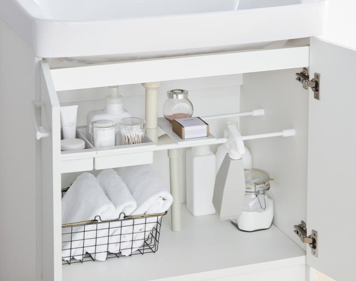 市販の洗面台下専用ラックは、排水管を避けた形状に設計されているものも多く、収納スペースをより無駄なく活用できます。突っ張り棒の自由度と専用ラックの安定感を組み合わせて使うことで、洗面台下のスペースを最大限に活かした収納が実現します。
